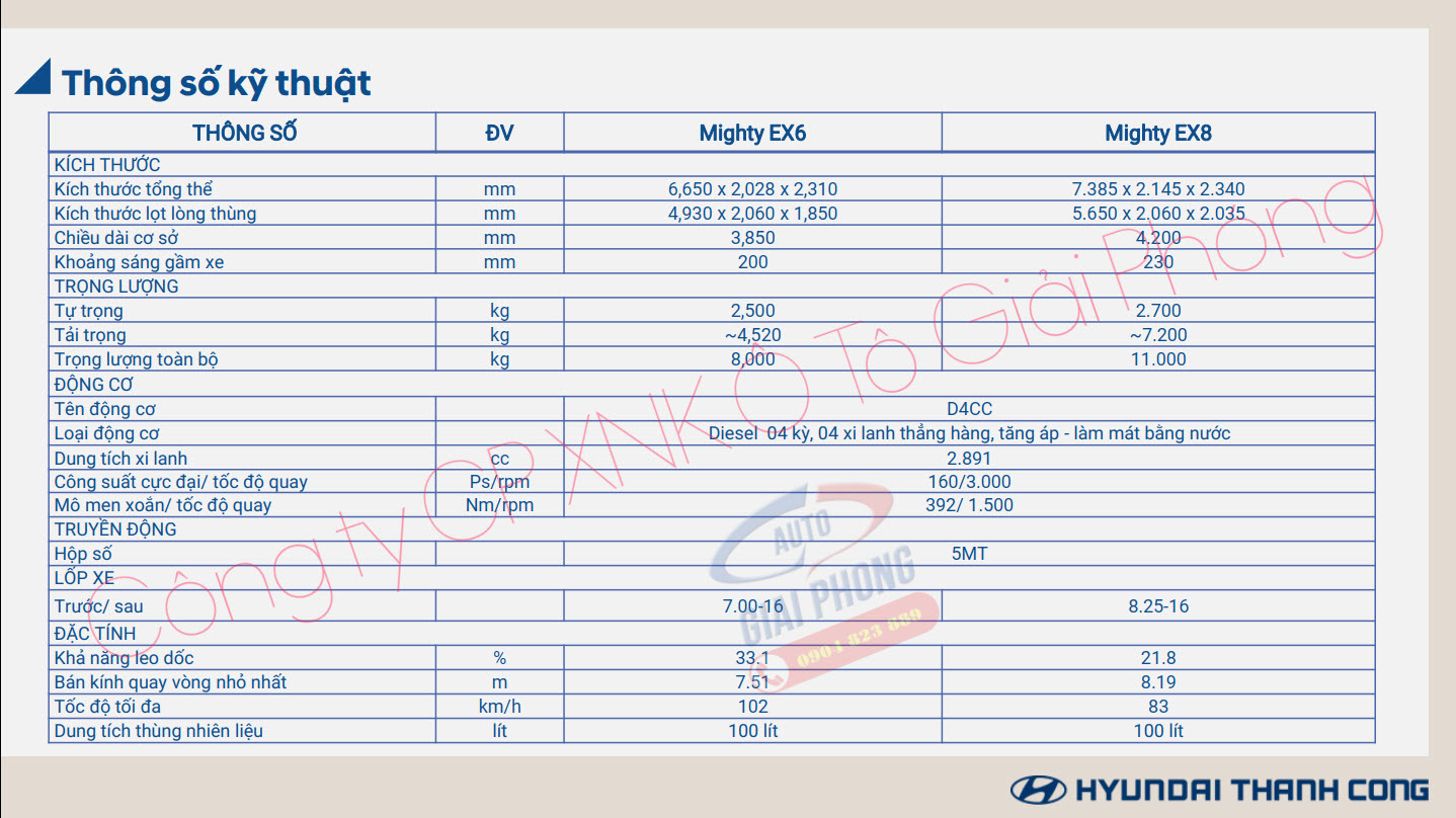 Bảng báo giá xe tải Hyundai này được Ô TÔ GIẢI PHÓNG, chúng tôi cập nhật liên tục theo bảng giá của nhà máy Hyundai Thành Công. Là đại lý Hyundai 3S chính thức của Thành Công, Auto Giải Phóng chúng tôi có trách nhiệm cập nhật liên tục giá của các dòng xe tải, xe thương mại của Hyundai Thành Công như Xe tải H150, Xe tải N250SL, Xe tải N250, Xe tải HD75S, Xe tải Hyundai 110S, Xe tải Hyundai 110SL, Xe tải EX8, Xe tải EX6, Xe tải EX8L… cùng các dòng xe tải nhập khẩu nguyên chiếc từ Hyundai Hàn Quốc về.